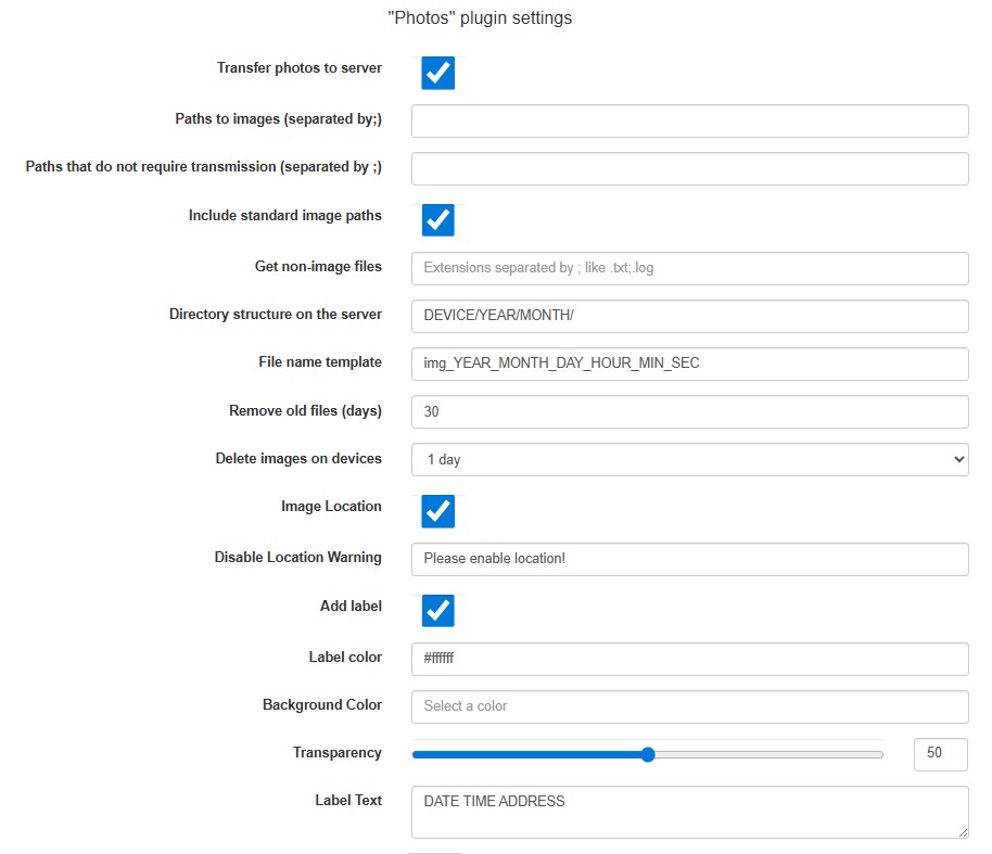 Transfer photos to server - set this flag to activate the mobile agent